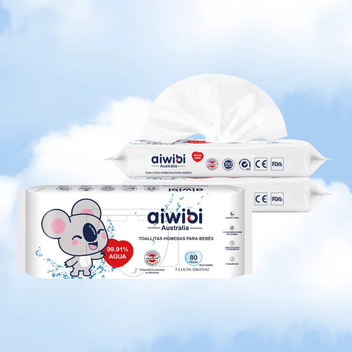 La delicada piel de tu bebé necesita toallitas puras y suaves. Las toallitas húmedas premium para bebés de Aiwibi con un 99,91 % de agua pura son la solución perfecta. Los ingredientes puros y simples son seguros para el contacto directo con los alimentos. Las toallitas se retiran individualmente para evitar la contaminación bacteriana.